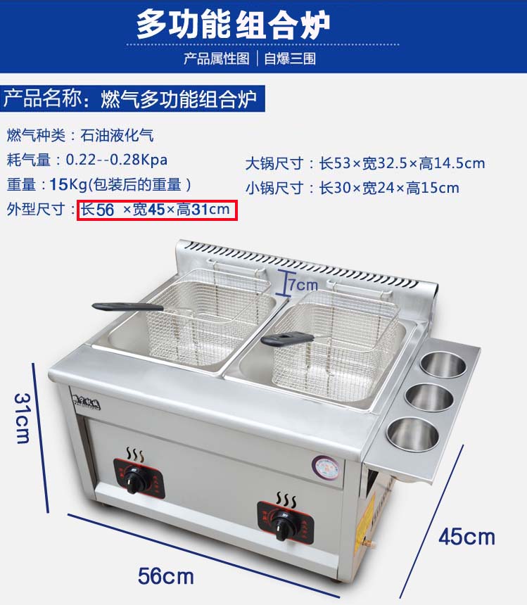Double-cylinder fuel gas fryer Commercial frying oven double boiler Frying Machine Fries Chicken Fork Bone Raw Iron Foci