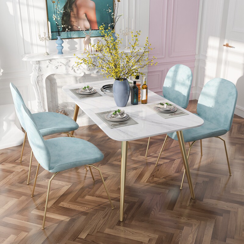Light luxury marble table household small household simple modern rectangular mesh table and chair combination dining table