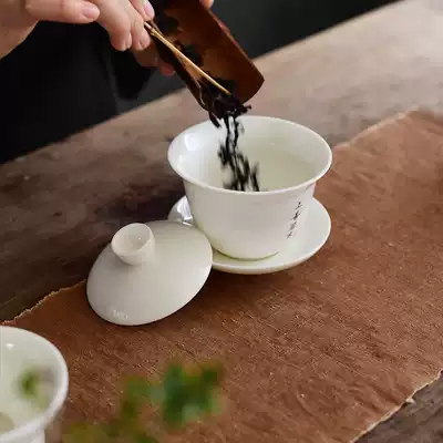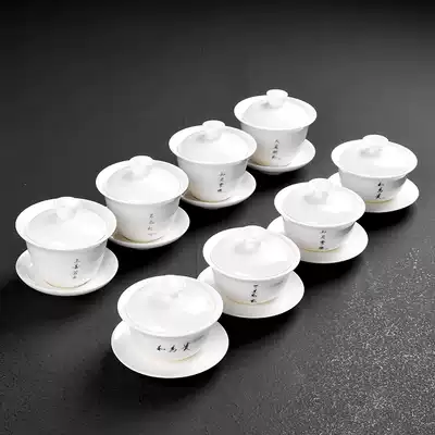 Calligraphy blue and white high white porcelain tea set cover Bowl Tea Cup three-style bowl tea maker large pure white porcelain tea bowl