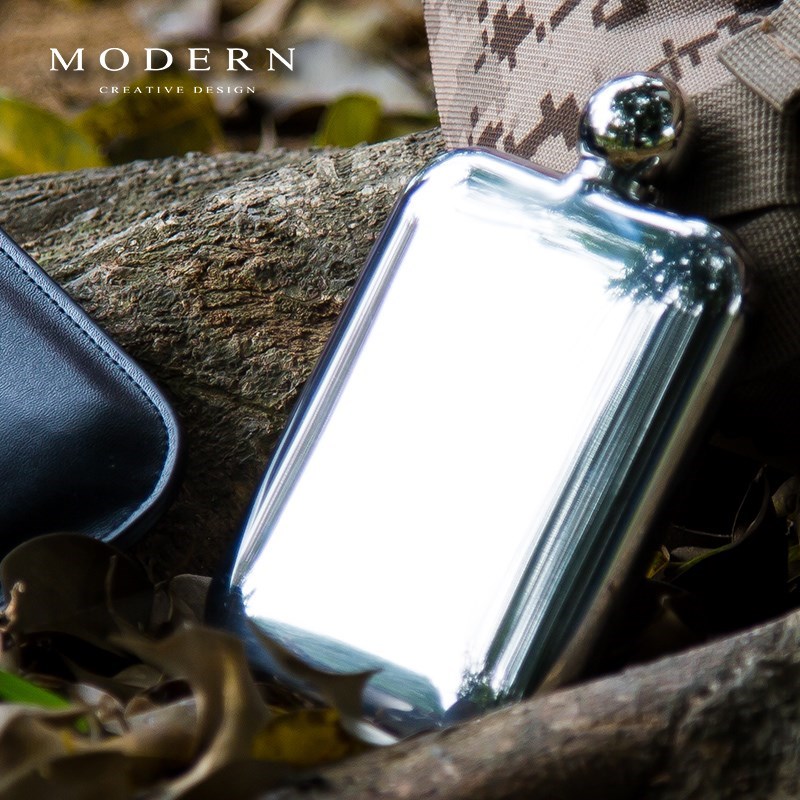 Germany imported 6 oz 304 stainless steel jug outdoor portable portable metal vintage liquor flat jug lettering