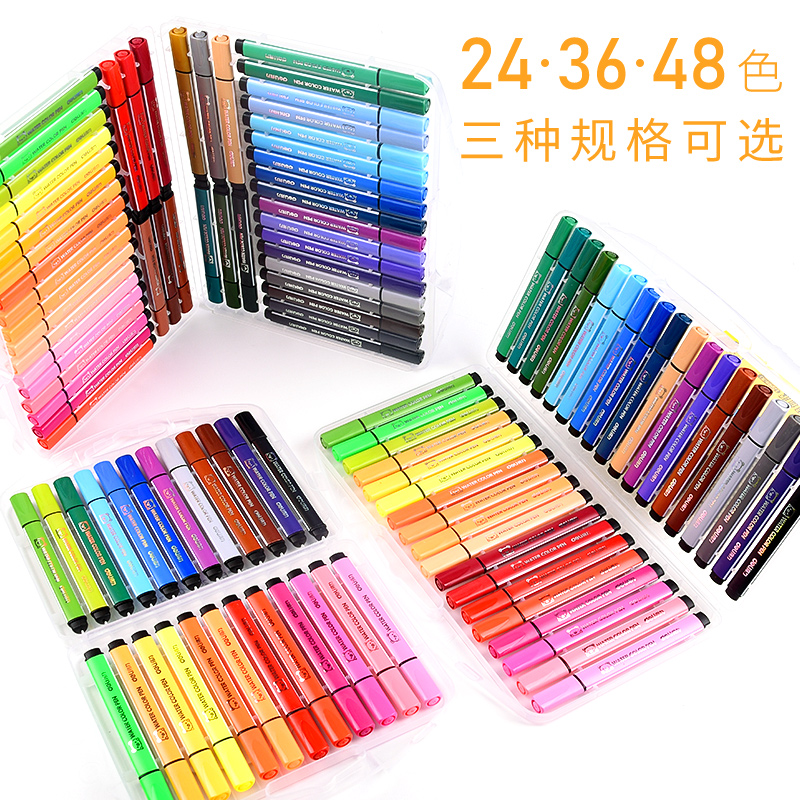 48 Color Able Watercolor Pen Suit Kindergarten Children 12 Color 24 Color Painting 36 Painting washable colored pen Primary school Children Safety Seal Non-toxic Soft Head Professional Fine Arts Painting