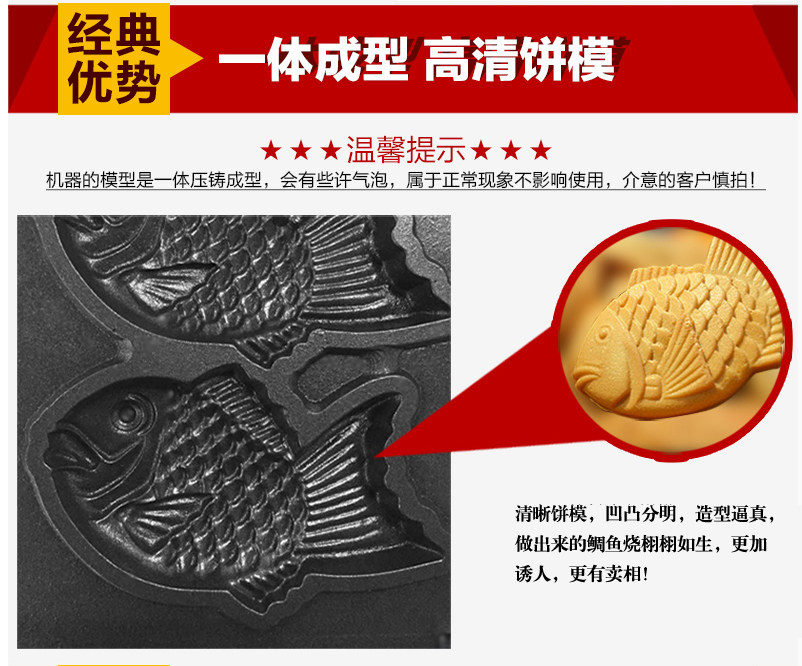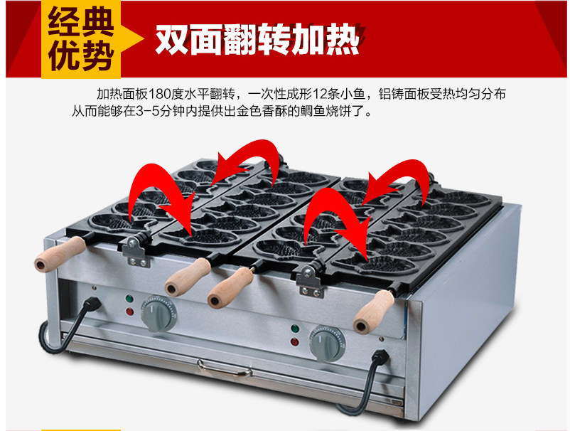 Commercial 12-hole electric heating sea bream machine small fish plate two plates twelve Korean fish cake machine Taiwan sea bream machine