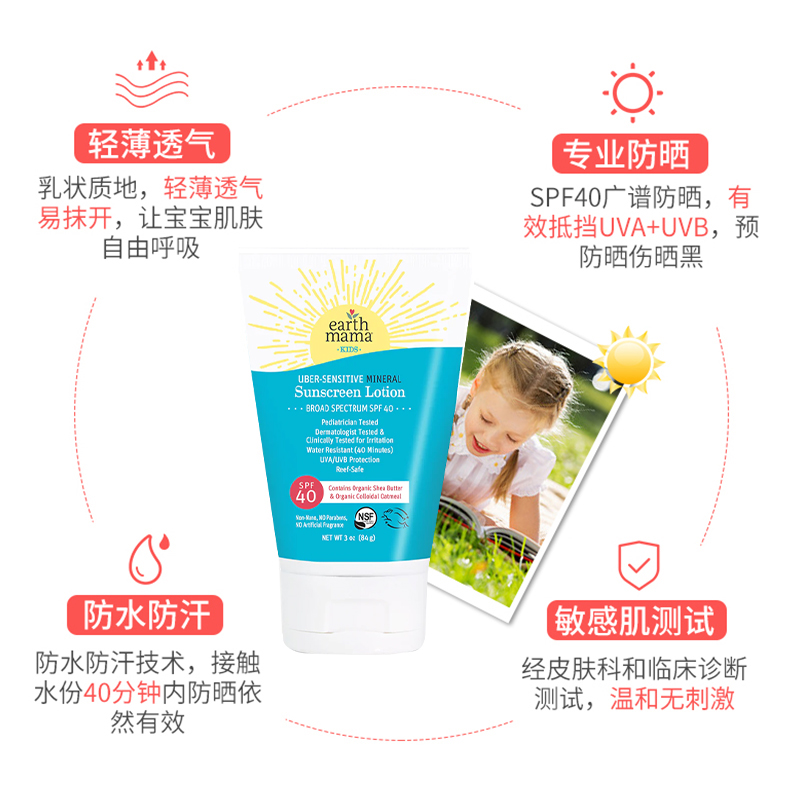 American Earth Mama Earth Mom Child Sensitive Skin Mineral Sunscreen lotion Anti-UV SPF 40-Taobao
