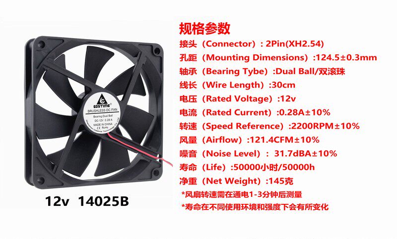 Time Tai brand new DC12v 14CM 140MM 140MM 14025 Double ball bearing durable host shell Cooling fan