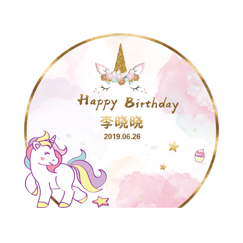 Unicorn theme baby Hundred Days party welcome card background KT board inkjet design material psd file