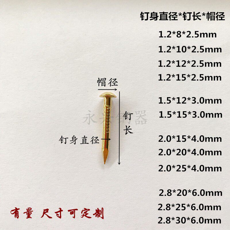 Chinese antique furniture hinge nail pure copper round head gold nail cap drum nail painting nail decoration small copper nail 250 gr