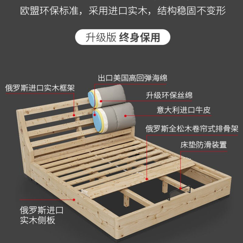 1 8m long 2m bed width 1 8m long 2 m solid wood bed 1 8m long 2 m solid wood bed Environmental friendly coconut pad width 1 8m long 2 m solid wood bed Natural latex mat width 2 m long 2 m bed (solid wood frame)