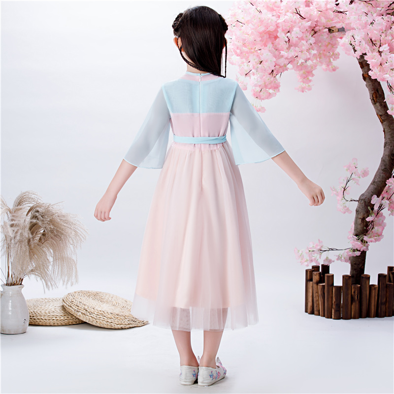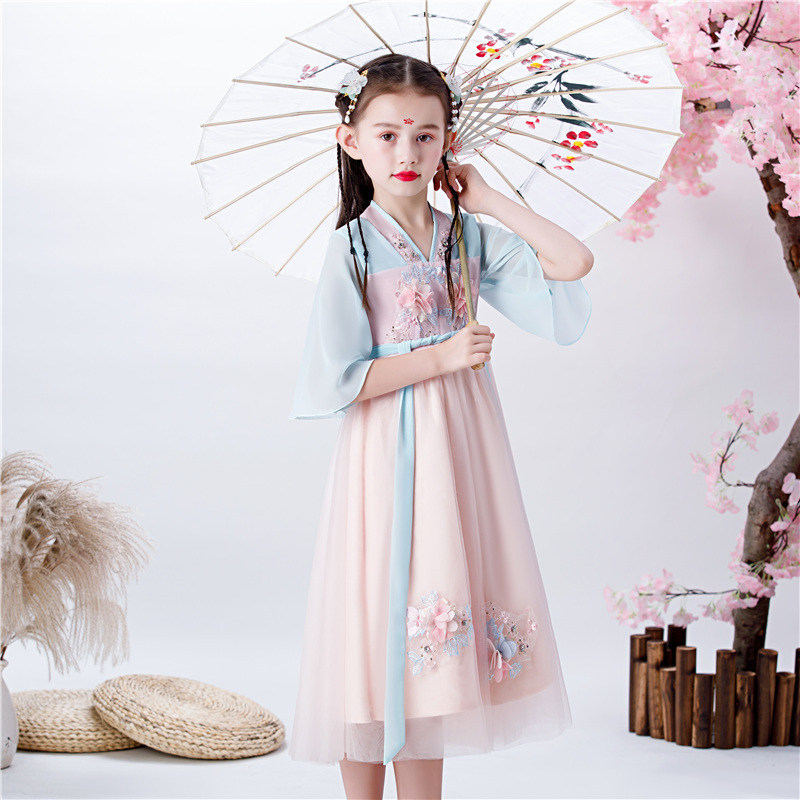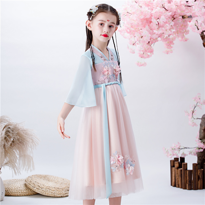 Chinese Style Girls Hanfu Ruskirt Ancient Costume Super Fairy Little Girl Tang Suit Douyin Fairy Short Sleeve 2021 New Spring and Summer