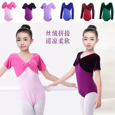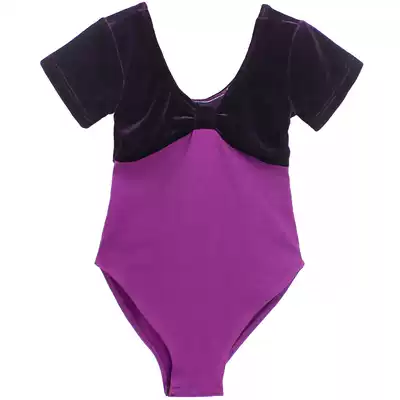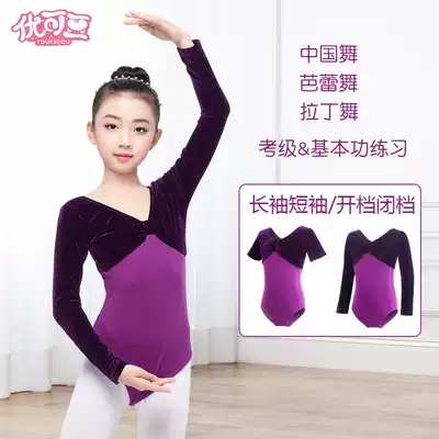 Dance clothes Children's women's spring and summer purple practice clothes Long-sleeved gold velvet jumpsuit Chinese dance Latin dance clothes
