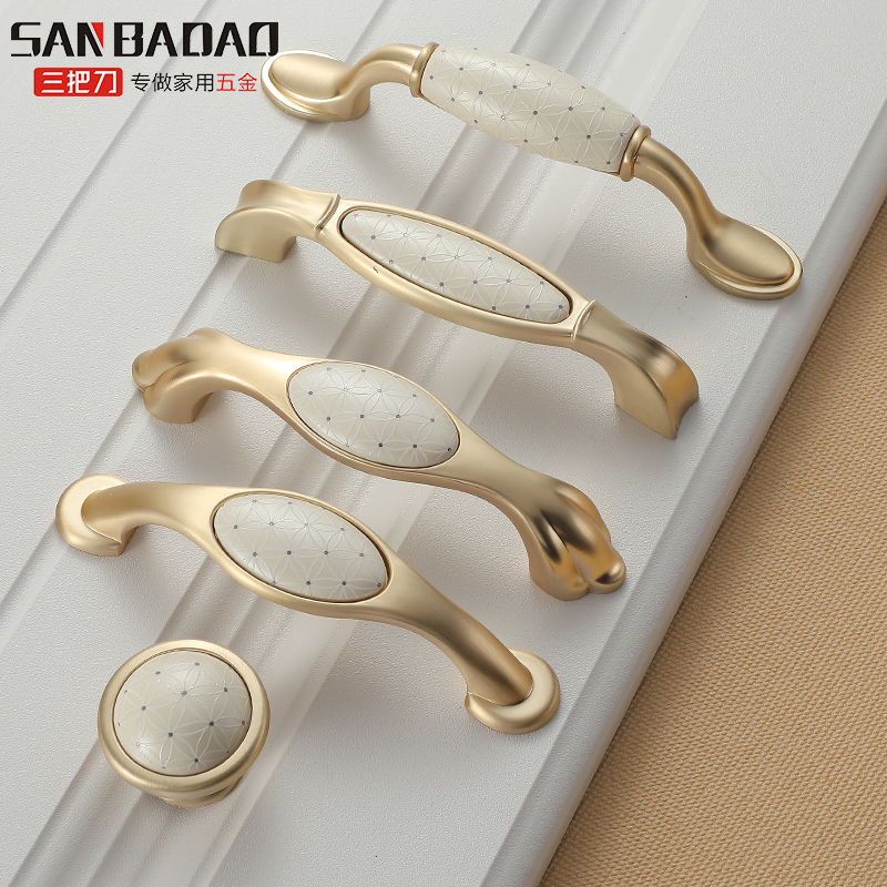 Eurostyle Fields New Golden Ceramic Cabinet Door Handle American Wardrobe Whole Cabinet Drawers Single-hole handle modern minimalist