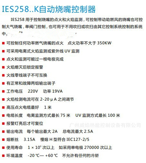 SINON burner ignition controller IES258-5 1W K automatic ignition controller