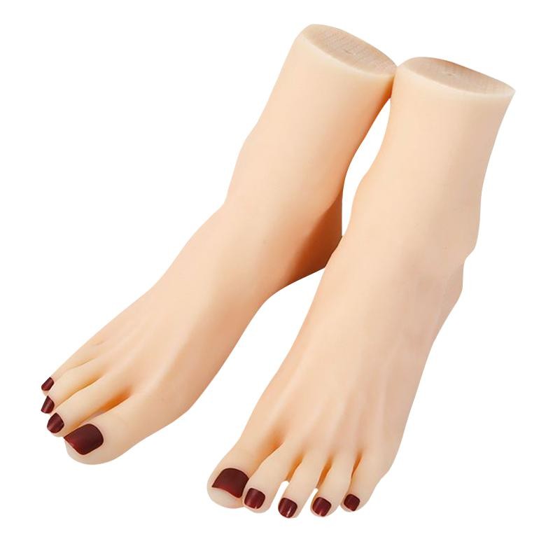 One foot, solid and full rubber (dark skin tone) One pair of feet, solid full rubber (dark skin tone) One foot, one foot with holes on the top (dark skin tone), one pair of feet with holes on the top (dark skin tone), one foot, with no bones