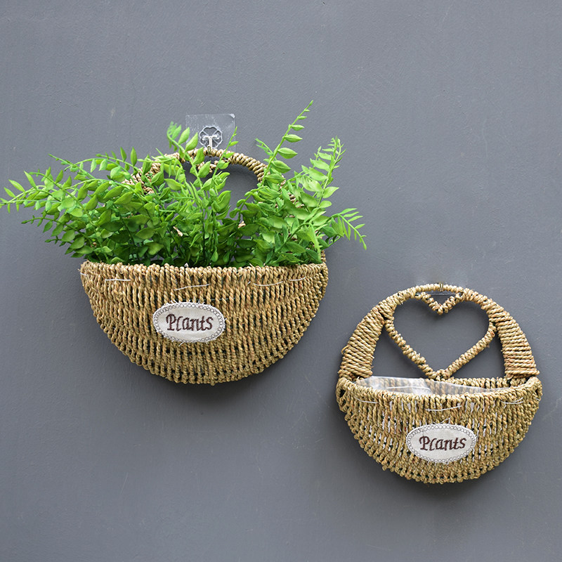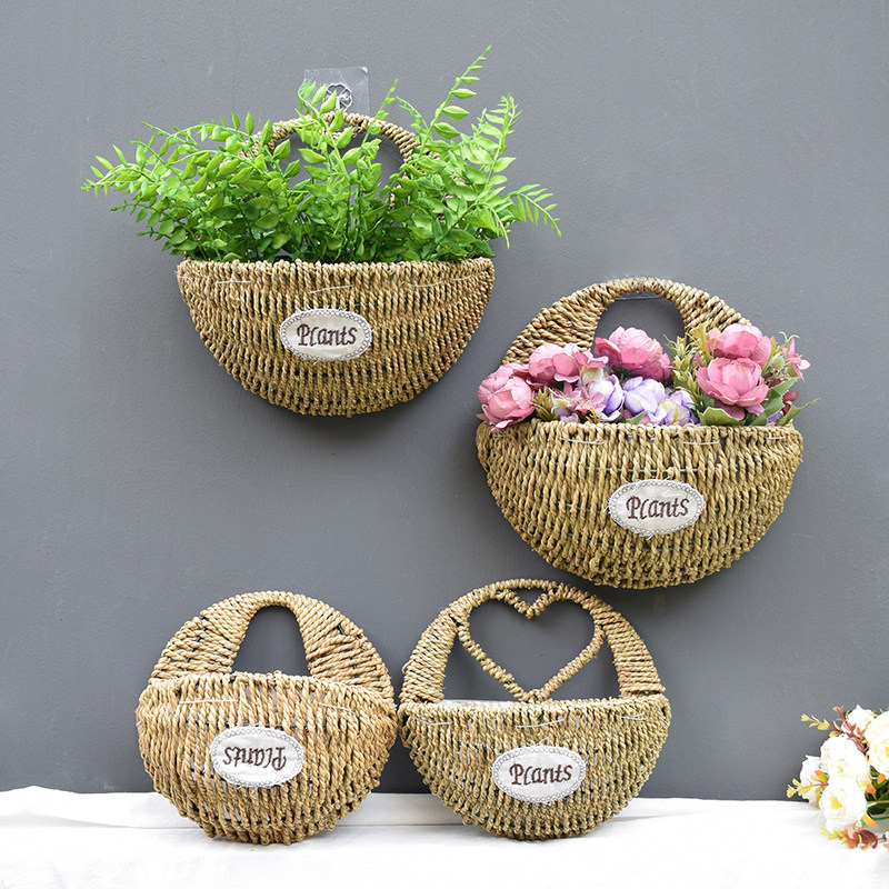 Flower basket Wall hanging grass woven wicker Pastoral hand Rattan hanging basket Wall wall decoration Flower pot Dried flower arrangement woven