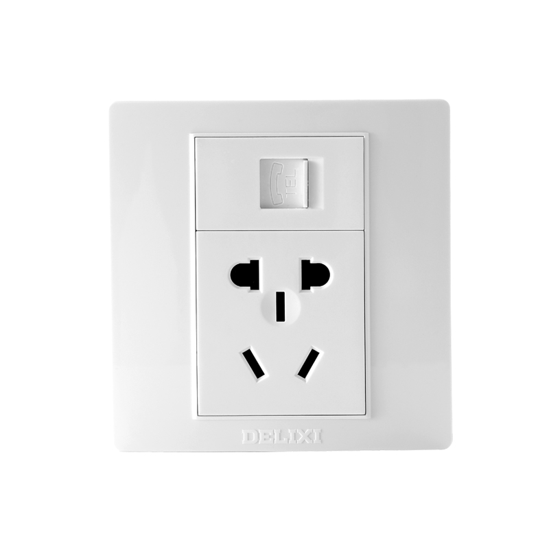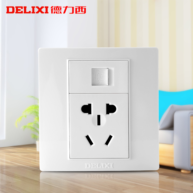 Delixi 86 wall switch socket telephone panel 5-pin socket telephone with five-pin power outlet