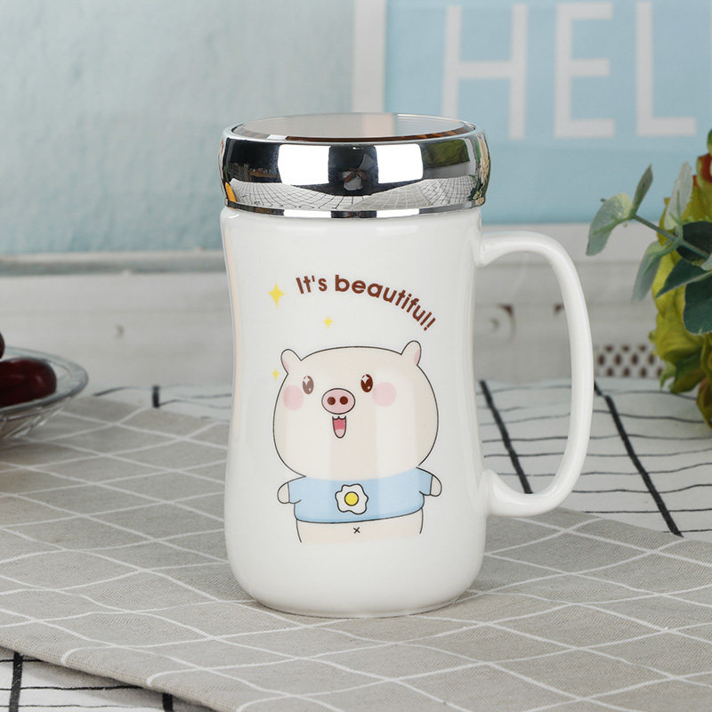 Cute Super Cute Cup Children Ceramics Creative Personality Coffee Cup Trending Couple Home Water Cup Mark Cup With Lid