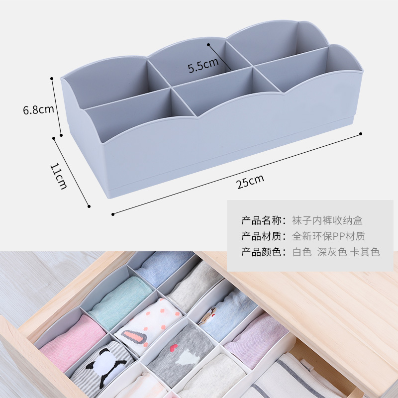 Multi-grid storage box Household put underwear finishing box Plastic socks sub-grid storage classification Multi-layer storage grid