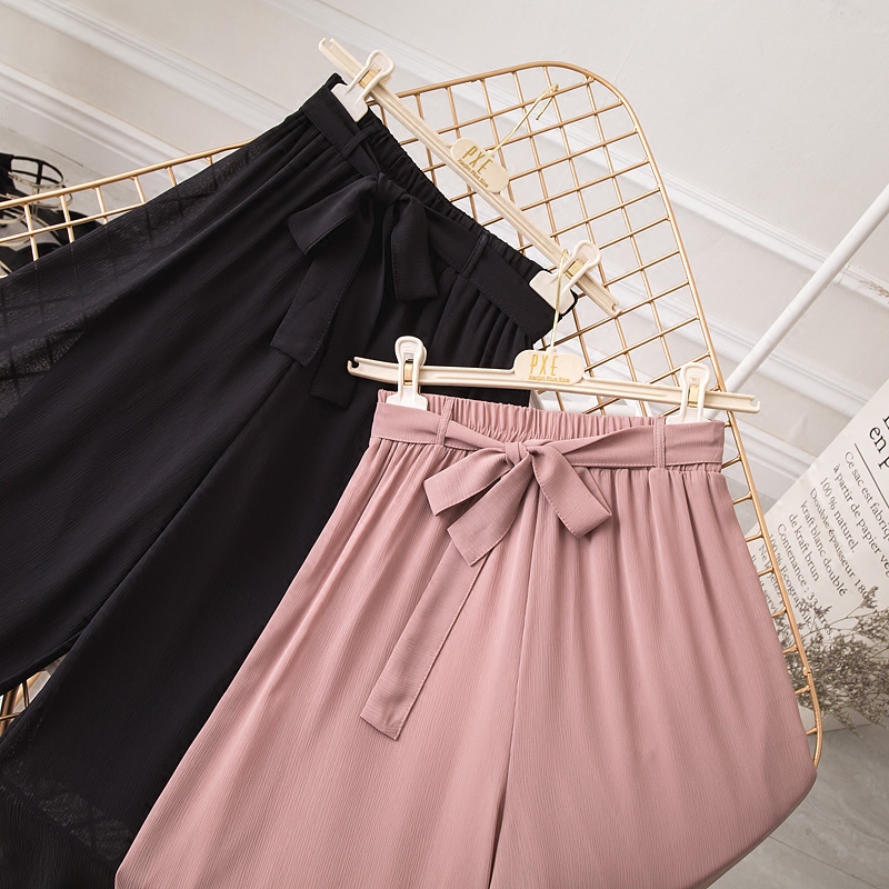Summer new 200 catty large size women's pants Fat sister loose Lean Snow Spinning Pumping Rope High Waist Wide Pants 90% Pants