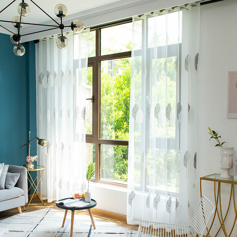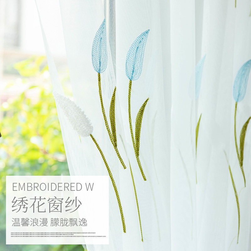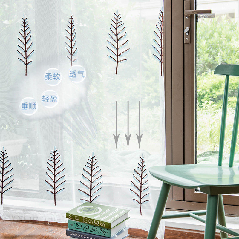 Nordic simple curtains White sand translucent embroidered yarn Anti-mosquito yarn curtain Balcony yarn Living room bedroom bay window partition yarn curtain