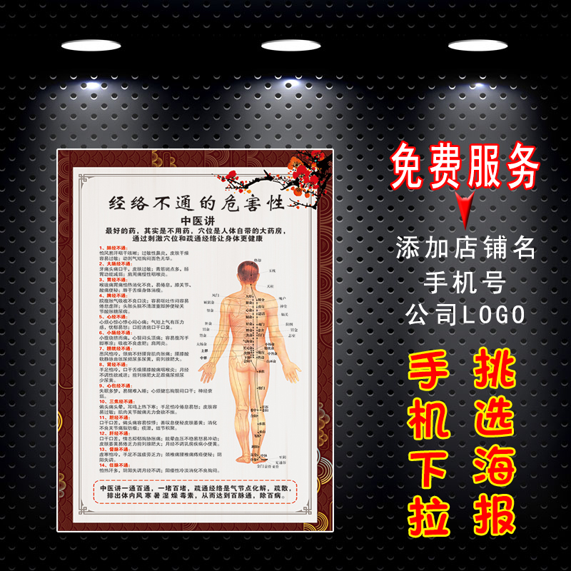 Human body fourteen Meridian Non manifestation Symptoms Harmful poster publicity painting Old TCM Museum Decorative Wall Chart