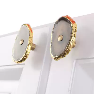 Nordic creative design naturalistic handle natural agate stone brass drawer cabinet door decorative handle
