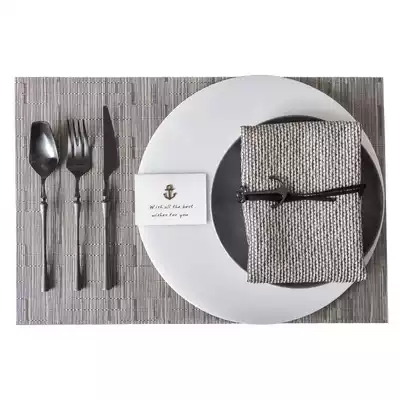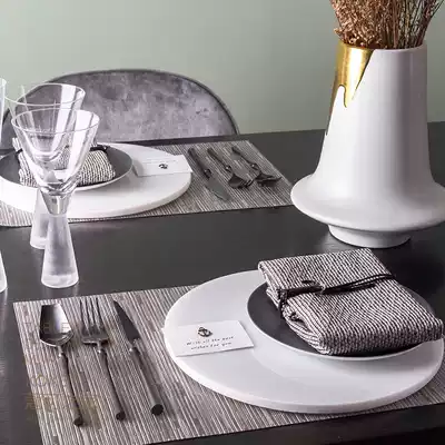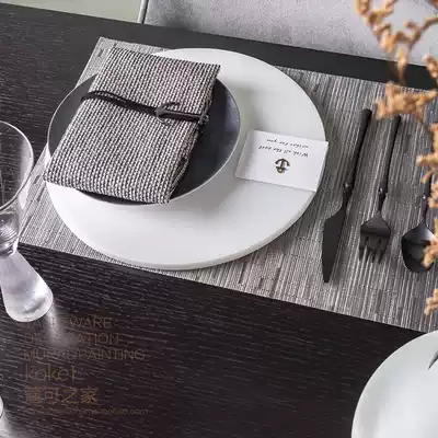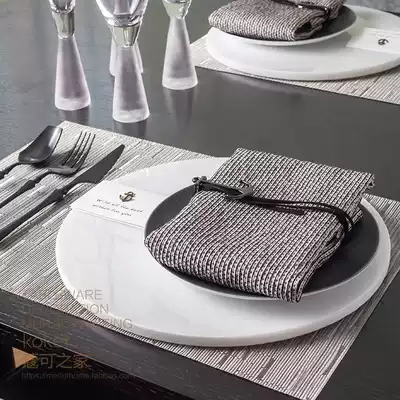 Table set is 0419 silver gray bamboo placemats (real price) marble pad plate (real price) 8 inch silver gray leather plate (real price) gray woven napkin (real price) black leather rope (real price) black rope (real price) Black