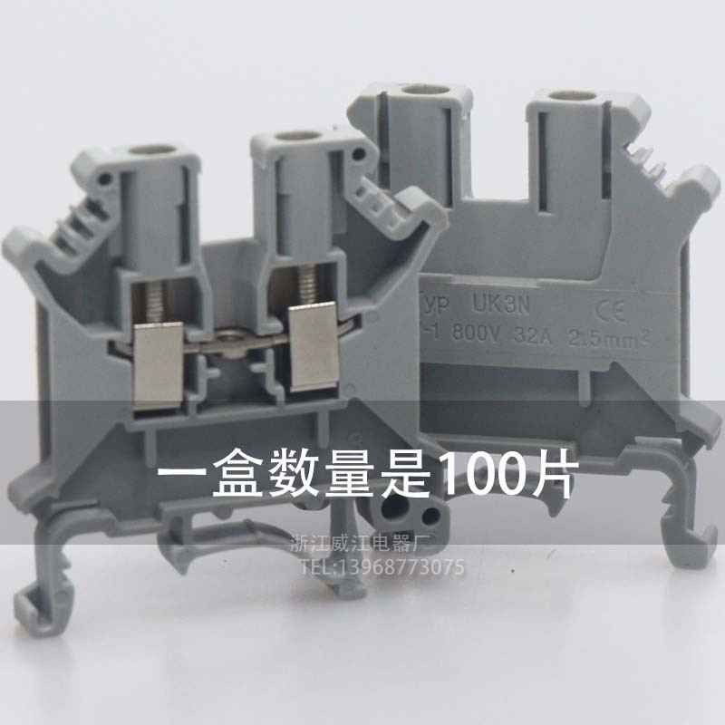 100 pieces of guide rail UK-3N voltage terminal block UK3n high quality pure copper 2 5MM square terminal