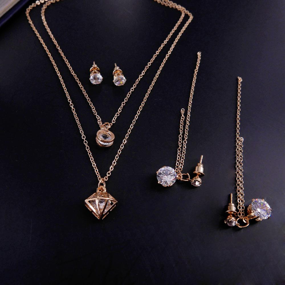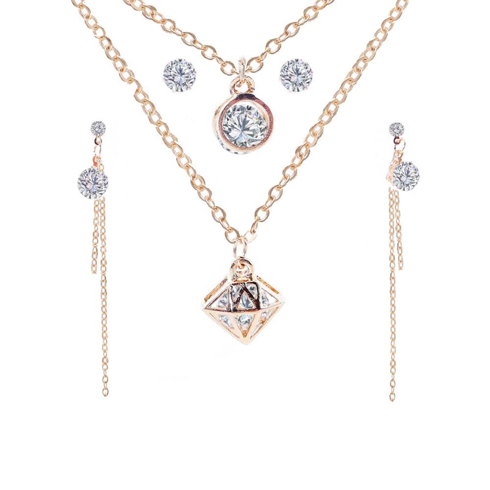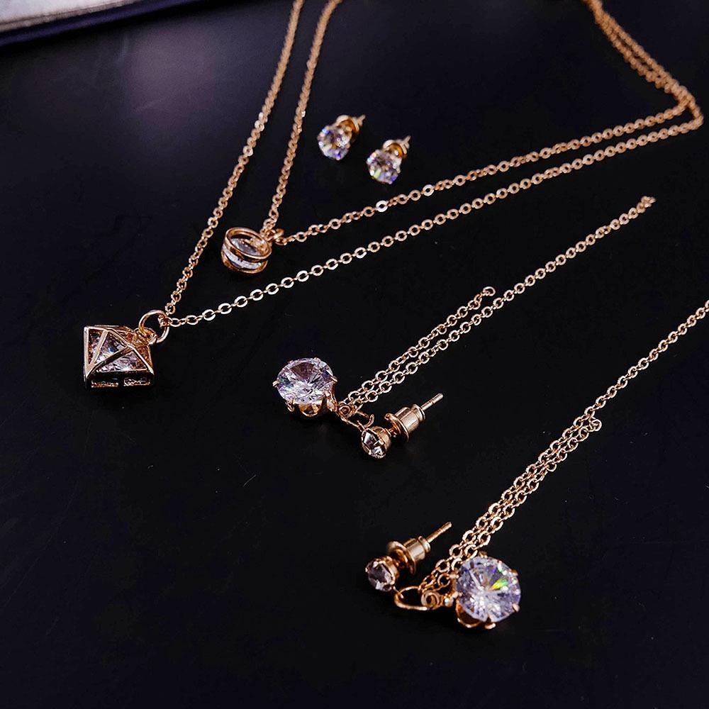 Necklace Handmade Earrings Ring Set Of Combination New Lady Brief Geometric Styling Zircon Jewelry Sets