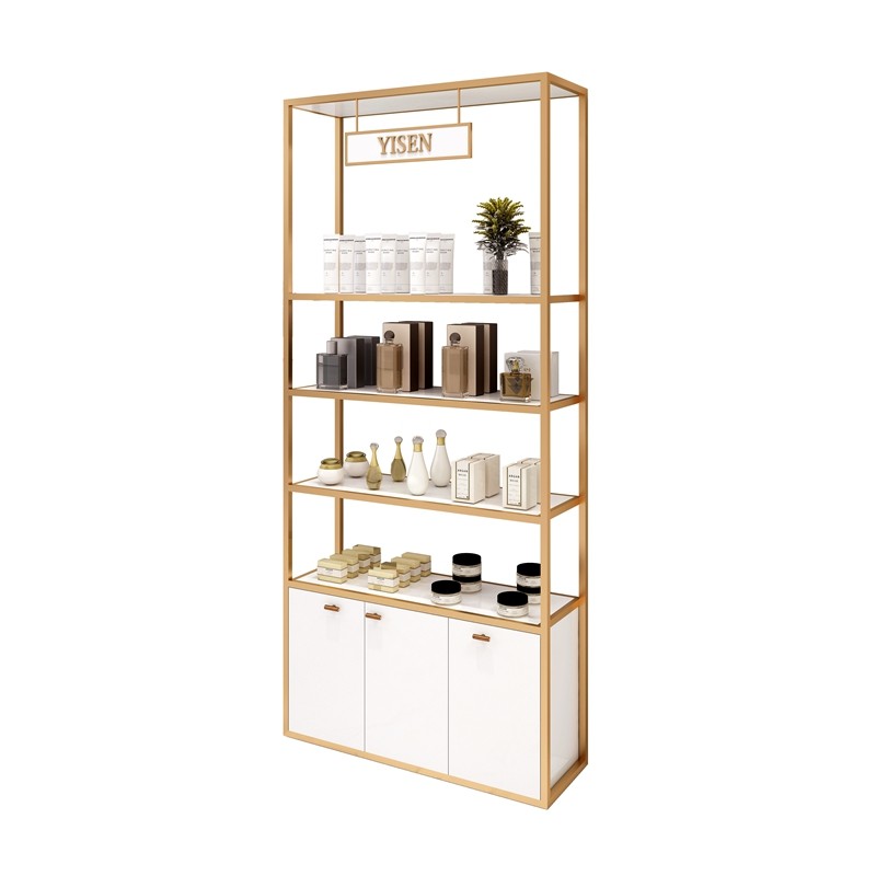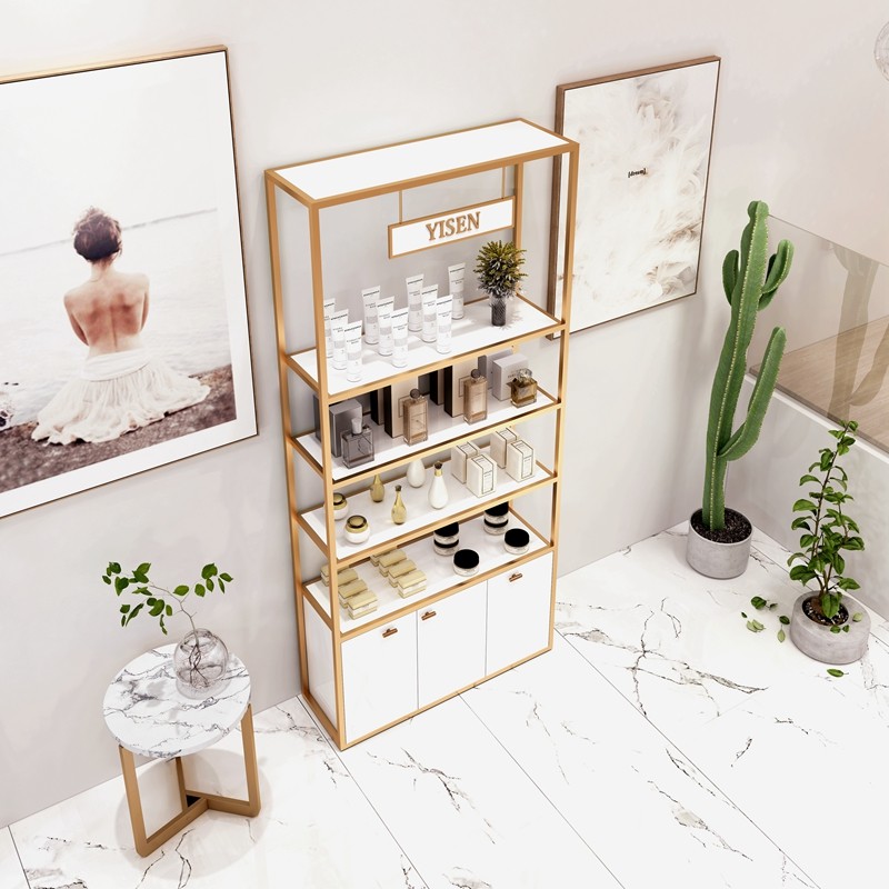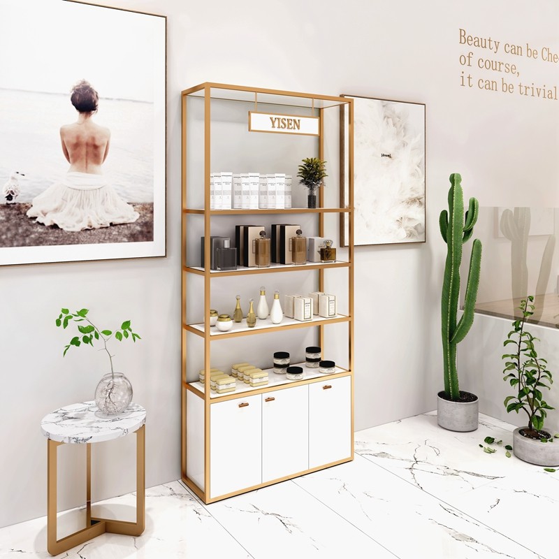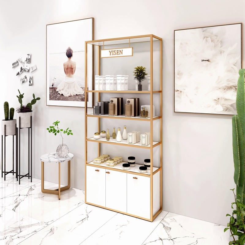 Nordic floor rack light luxury beauty store cosmetics golden display cabinet nail art display jewelry storage rack