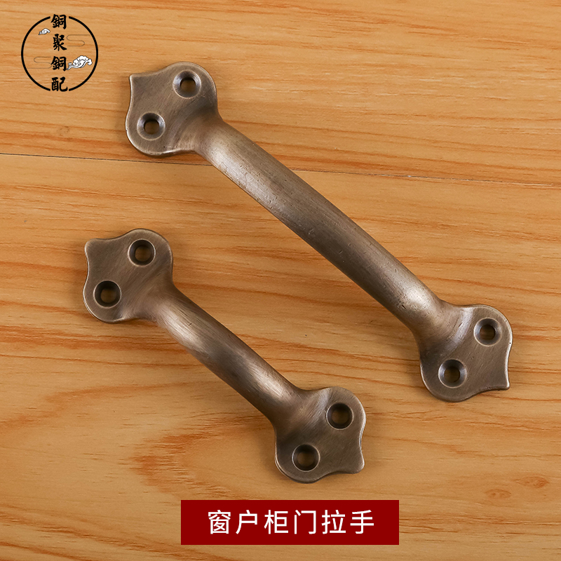 Chinese antique furniture drawer pure copper ruyi handle open-fitting window clothing full-body cabinet cabinet door simple old-fashioned handle