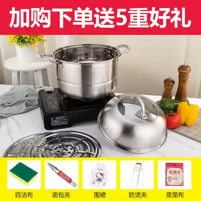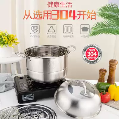 304 stainless steel steamer thickened household double 2 two-layer compound bottom induction cooker multi-purpose steamer gas stove universal 30cm