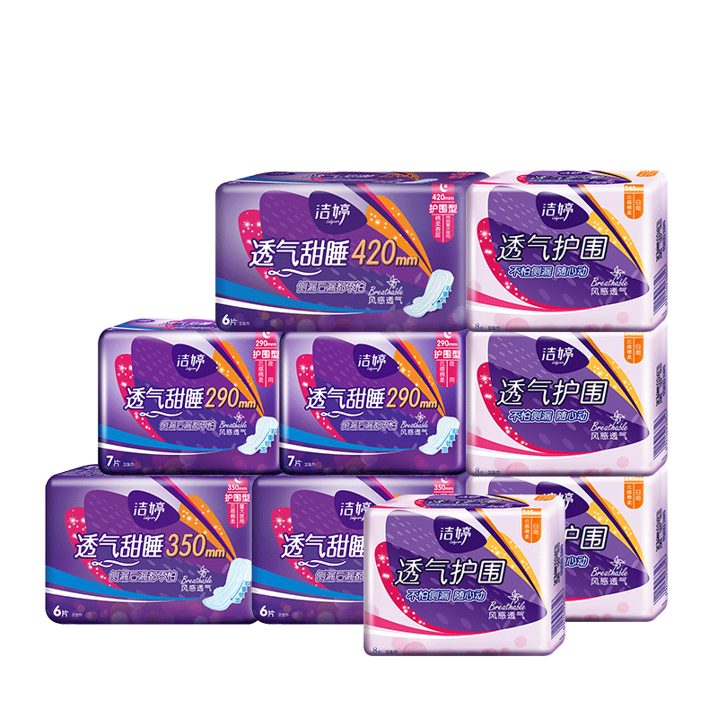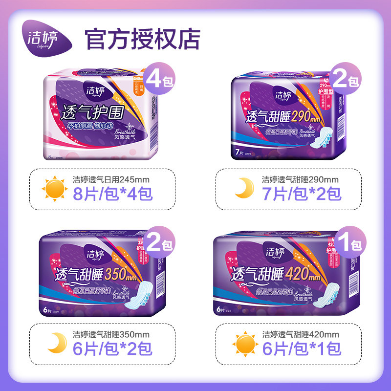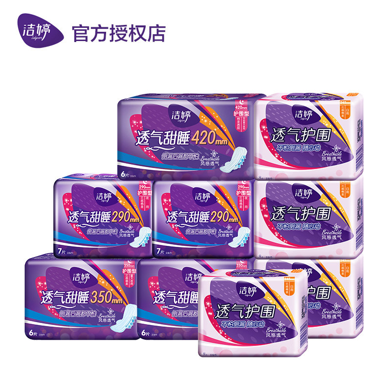 Glint sanitary cotton female wind sensation breathable cotton soft protective surrounding type day and night anti-aunt Aunt Towel 9 Pack 64 Sheet Combined Clothing
