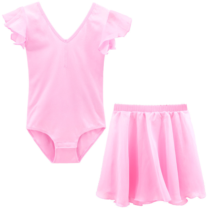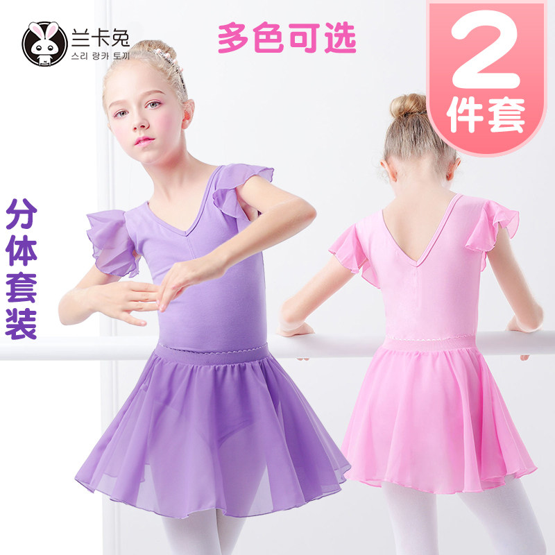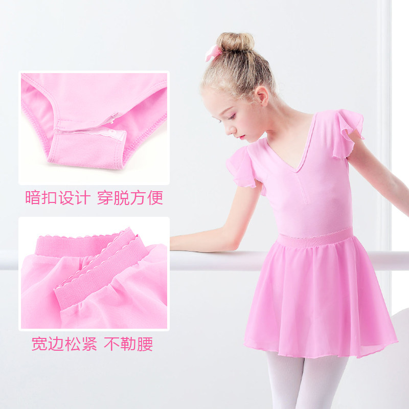 Children's dance clothes girls summer short-sleeved ballet skirt pink physical examination training clothes dance clothes suit