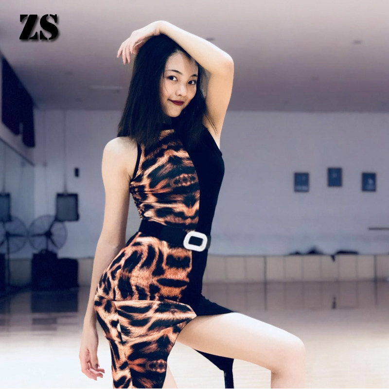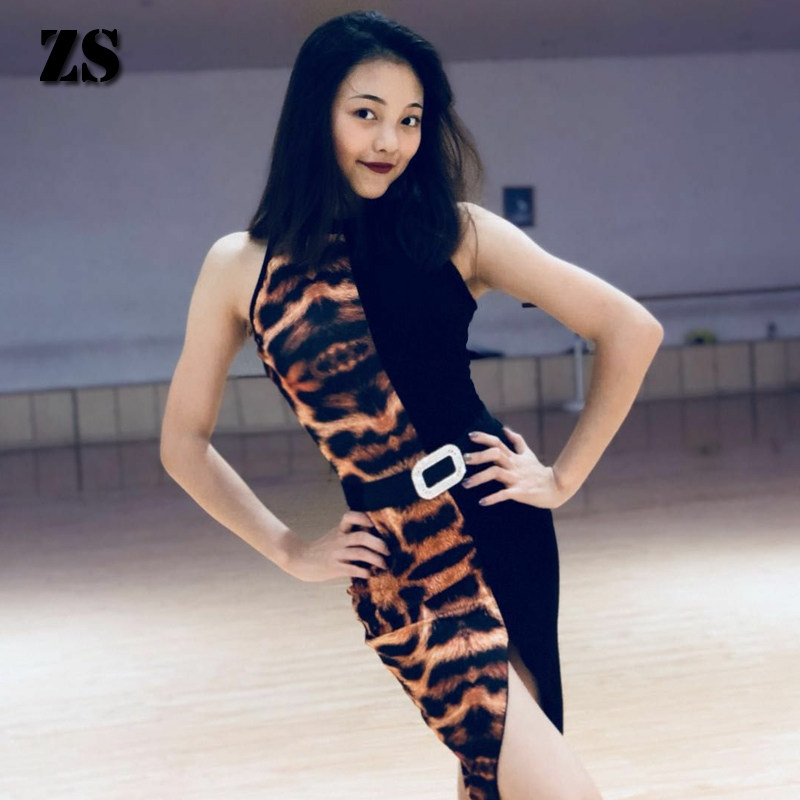 Latin dance dress new adult female hanging neck fish tail wrap hip flow SubAO WEN black parquet colour sloped shoulder foreign dress L126