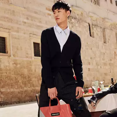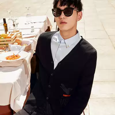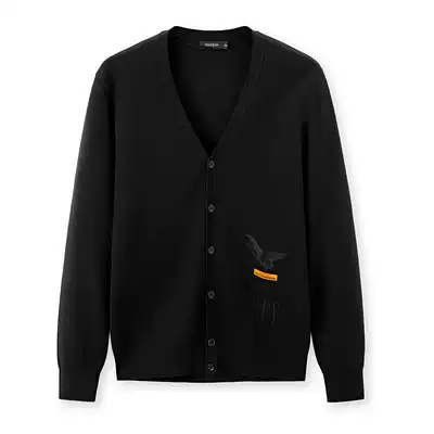 Taiping Bird Men's Ole Black Crane Embroidered Hair Cardigan Coat Fashion Knitting Sweater m