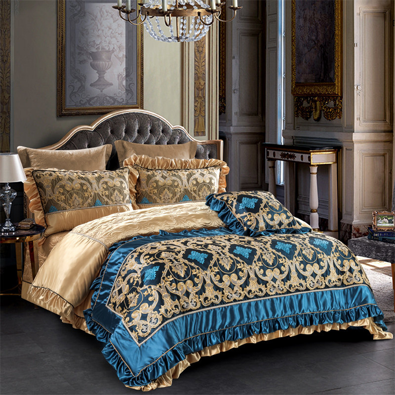 60S Elastic Satin AB Version Comfortable, Soft, Simple, Fashionable, Atmospheric Active Printing and Dyeing Bed Cover Six-piece Set