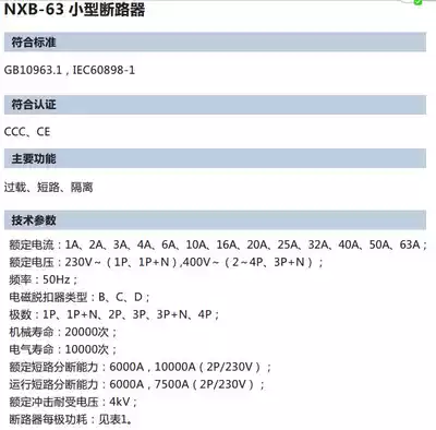 Chint NXB-63 D type 1p 2p 3p 4p motor dedicated power type air switch 32a63a125A