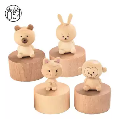 Wooden rotating music box Small animal music box Sky City creative gift for girl girlfriend children's birthday gift