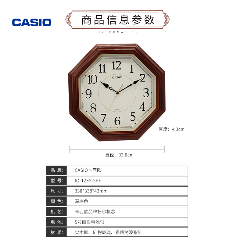 CASIO (CASIO) watches and clocks New Chinese living room Atmosphere China Feng Shui quartz Clock anise solid wood hanging clock