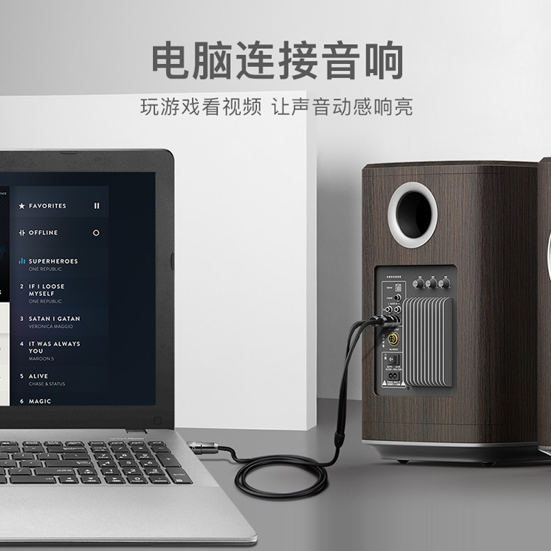 Akihabara QS3403 Q565 audio cable one point two 3 5mm to double lotus rca flat connection speaker amplifier extension cable Universal desktop host notebook audio cable
