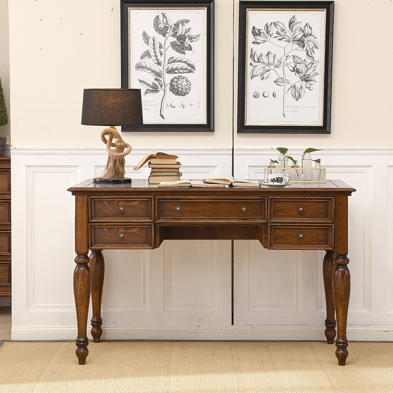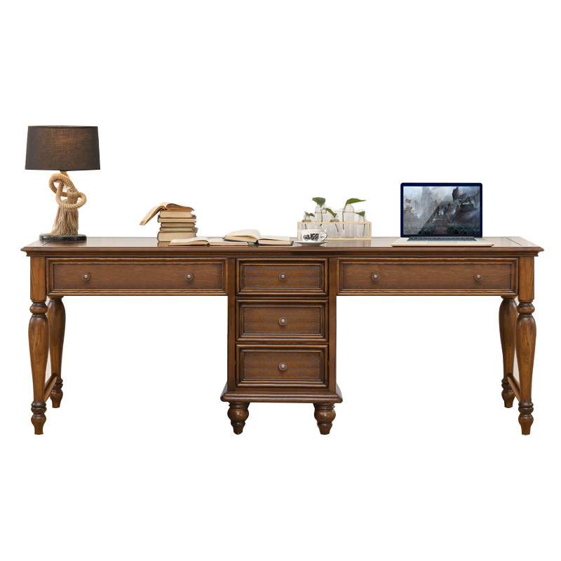 Double American all solid wood long desk home multifunctional bedroom study large desk adult computer desk