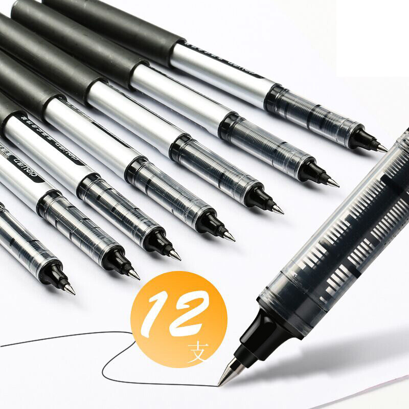Powerful large-capacity straight liquid pen students walk beads Jun neutral pen simple signature pen junior high school students real liquid type black straight