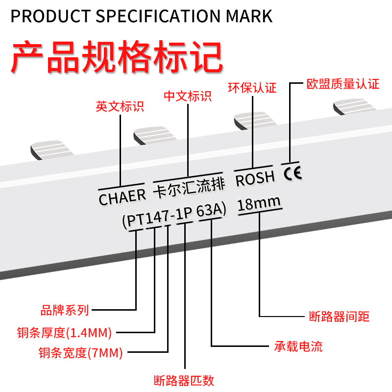 CHAER Carl PT147-1P 63A copper bus bar C45 circuit breaker wiring strip ROSH CE certification