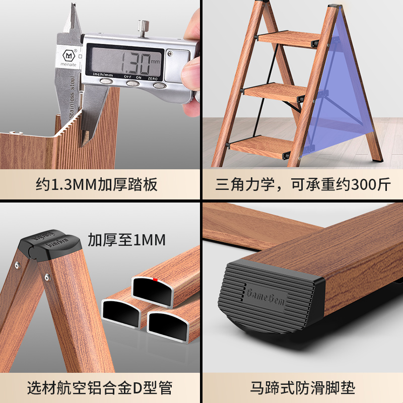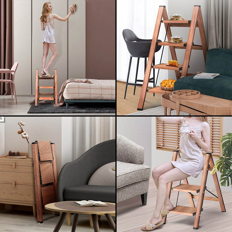 Floor height of about 27 meters is recommended to 3 steps Floor height of about 30 meters is recommended to 4 steps Multi-functional flower stand ladder stool Three-step ladder wood grain color Multi-functional flower stand ladder stool four-step ladder wood grain color