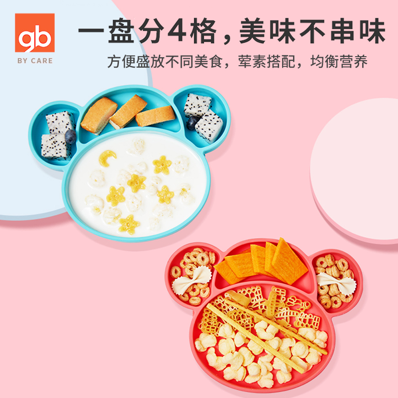 Good kids baby tray suction cup baby dinner tray divider tray children's tableware set silicone straw bowl learn to eat