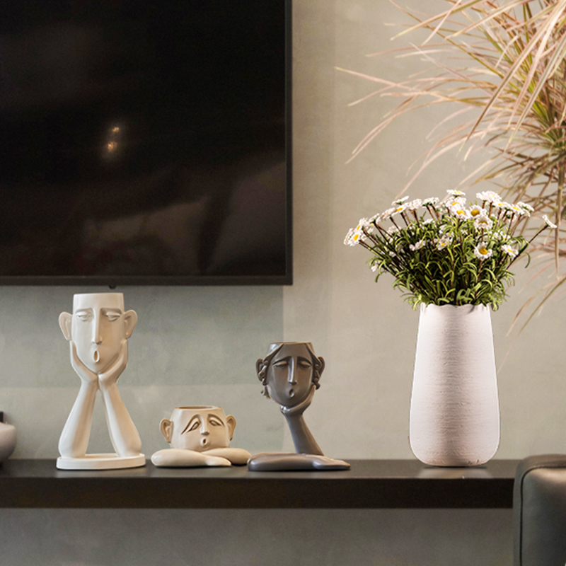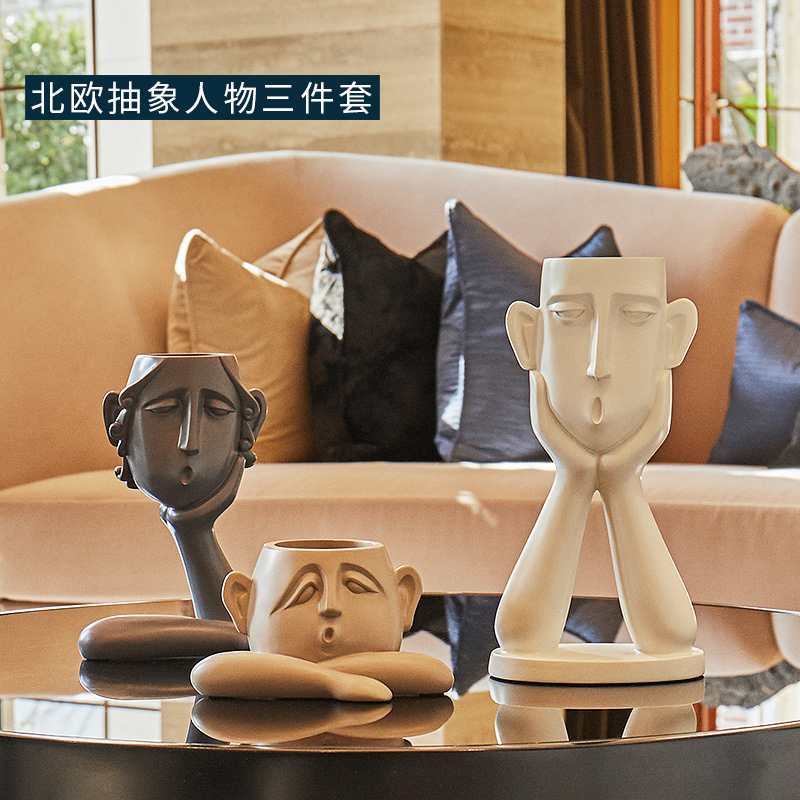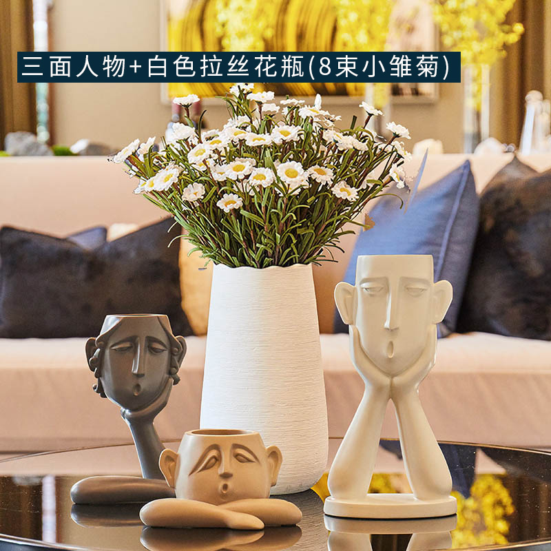 Nordic abstract human face vase (three sides) white wire drawing vase 8 small daisy Nordic abstract human face vase (three sides) white handmade vase (wide 14 height 25) ceramic wire drawing flower
