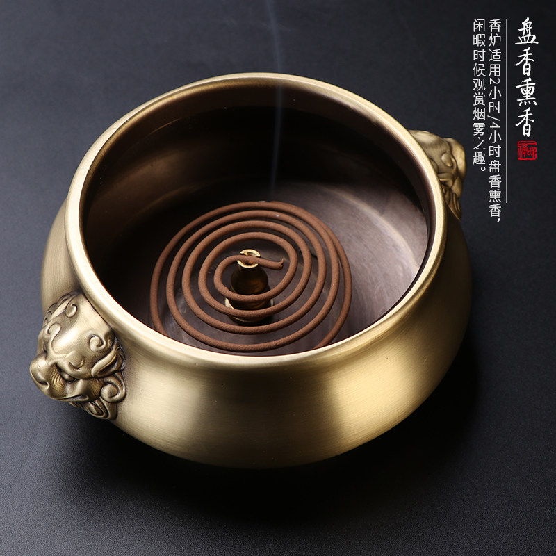Siyou pure copper incense burner large household incense burner indoor offering ring incense burner incense line incense Xuande stove ornaments