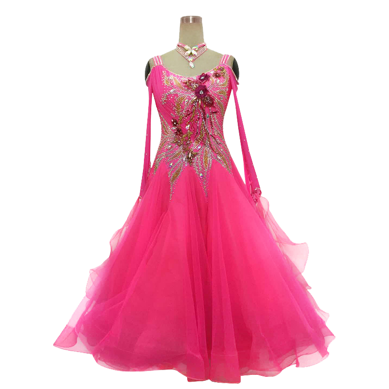 New modern dance national standard dance performance skirt competition skirt dress waltz dance dress with drill belt streamer