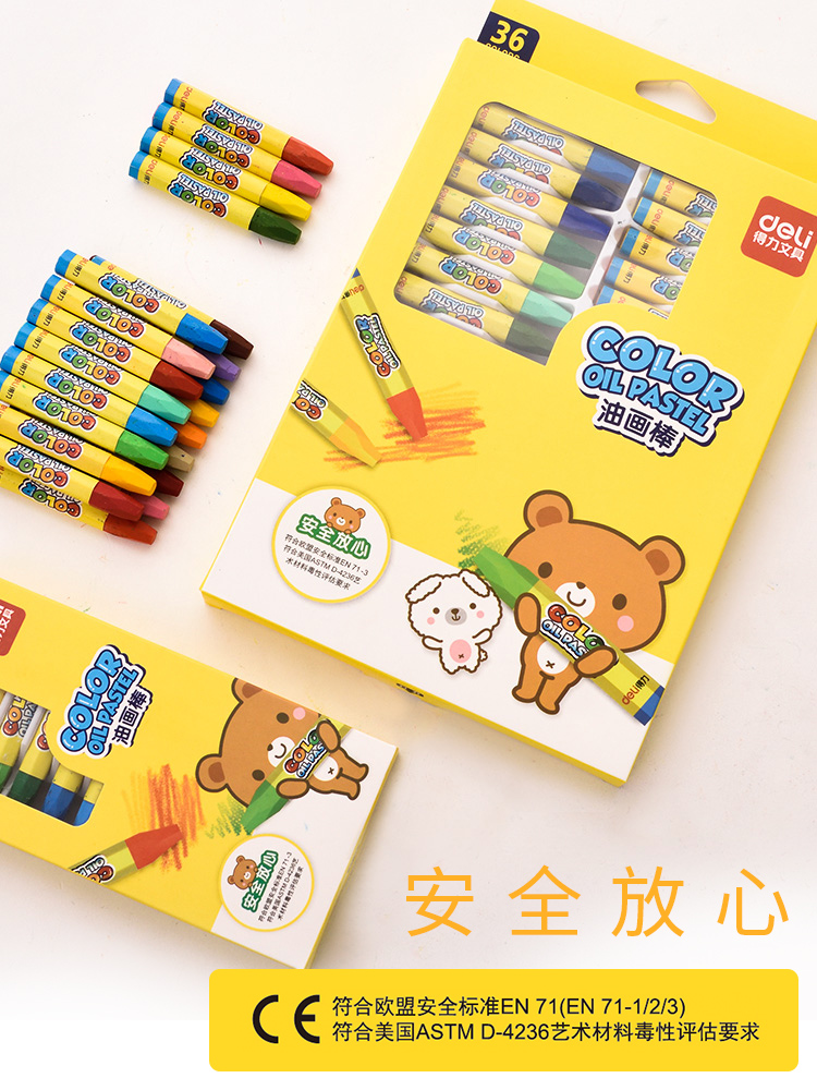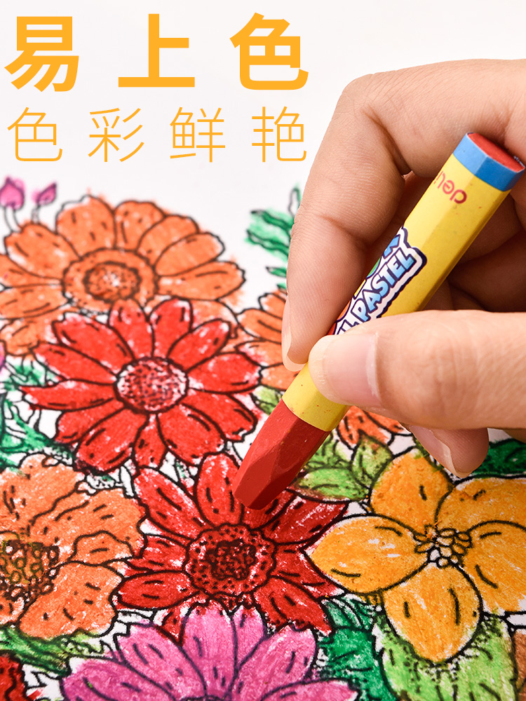 Deli 48 color oil painting stick Children's drawing crayon Safe and non-toxic washable kindergarten baby oil painting stick brush color crayon coloring pen oilizing stick