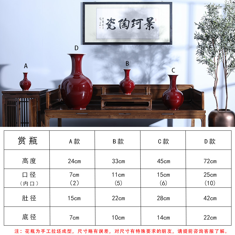 Jingdezhen Ceramic equipment Red Flowers Bottle New Chinese Flower Arrangement Instrumental Home Living Room Adornment collection Large number of code swinging pieces