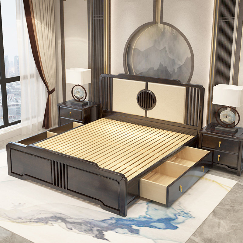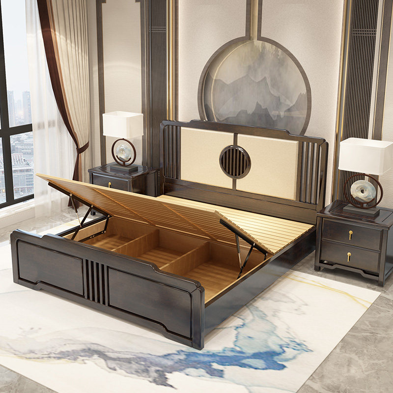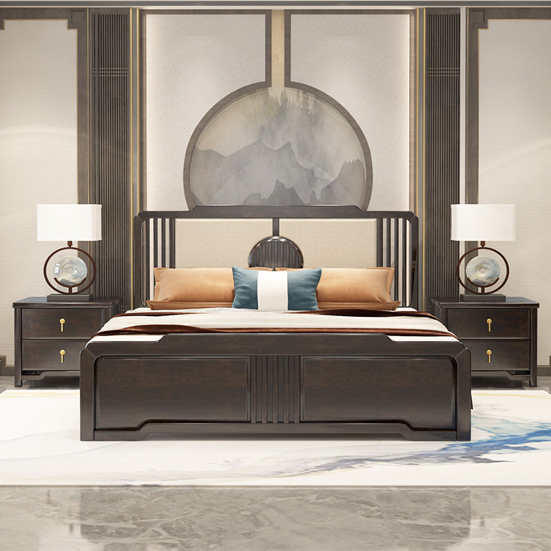 New Chinese Solid Wood Bed Modern Chinese Master Bedroom Hotel 1 5 m 1 8 m Double beds Large Bed Zen furniture-Taobao